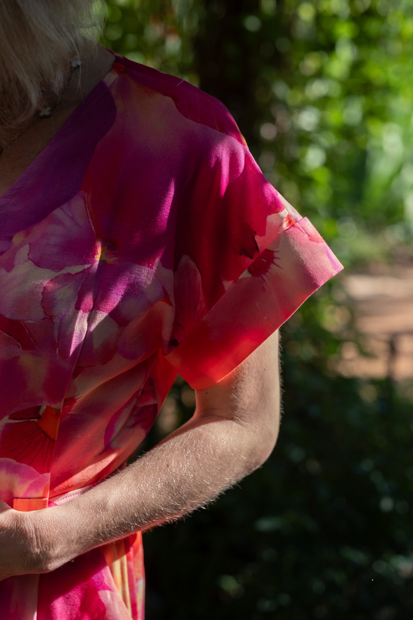 She is a creative, a mother, a wife, a caring heart who is always on the go. She is as vibrant as the colours of this jumpsuit and needs the flexibility to be able to plant her garden, pick up her kids, craft gifts for her friends as well as running around the kitchen creating dishes to share with the people at her table.