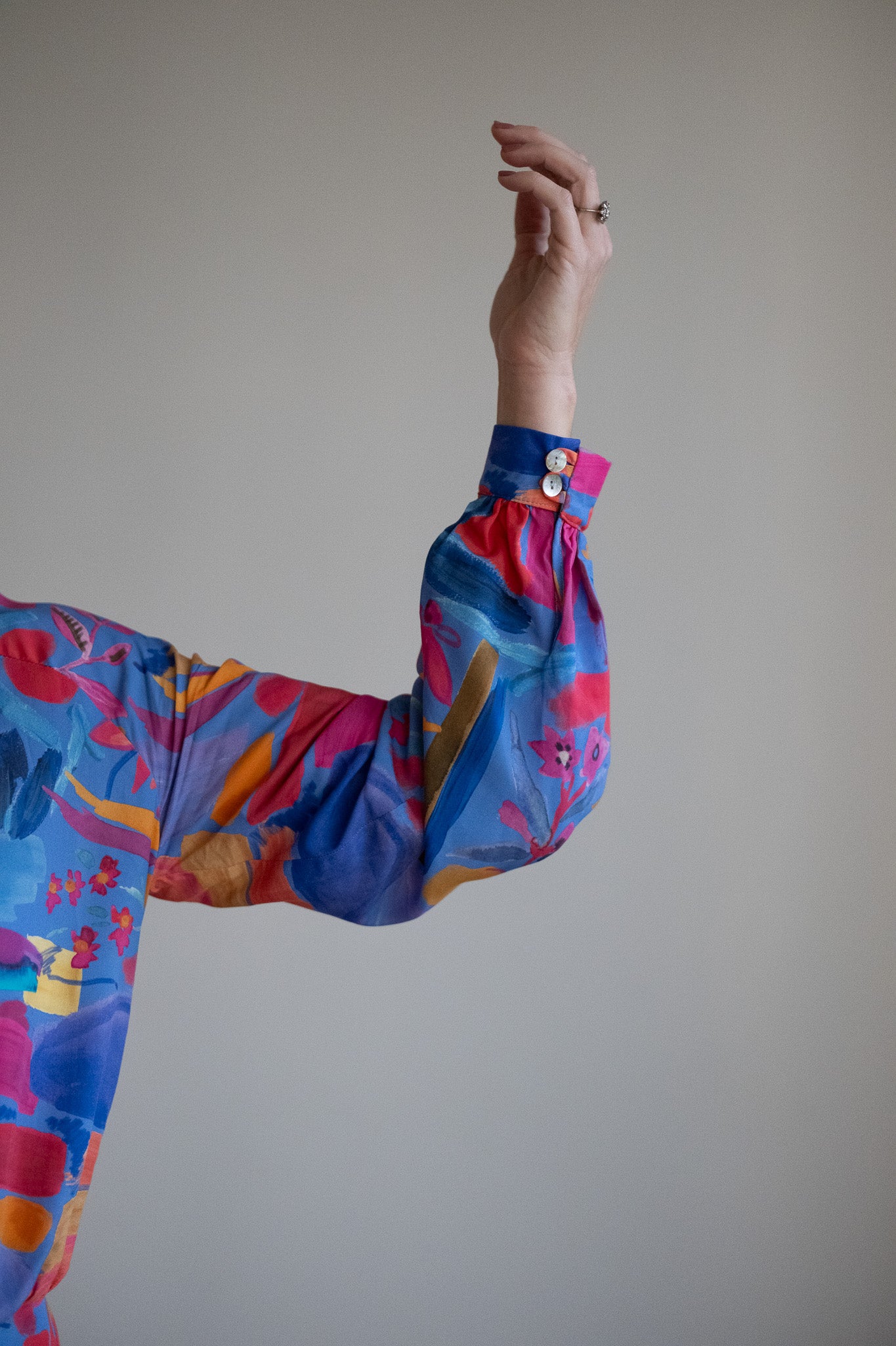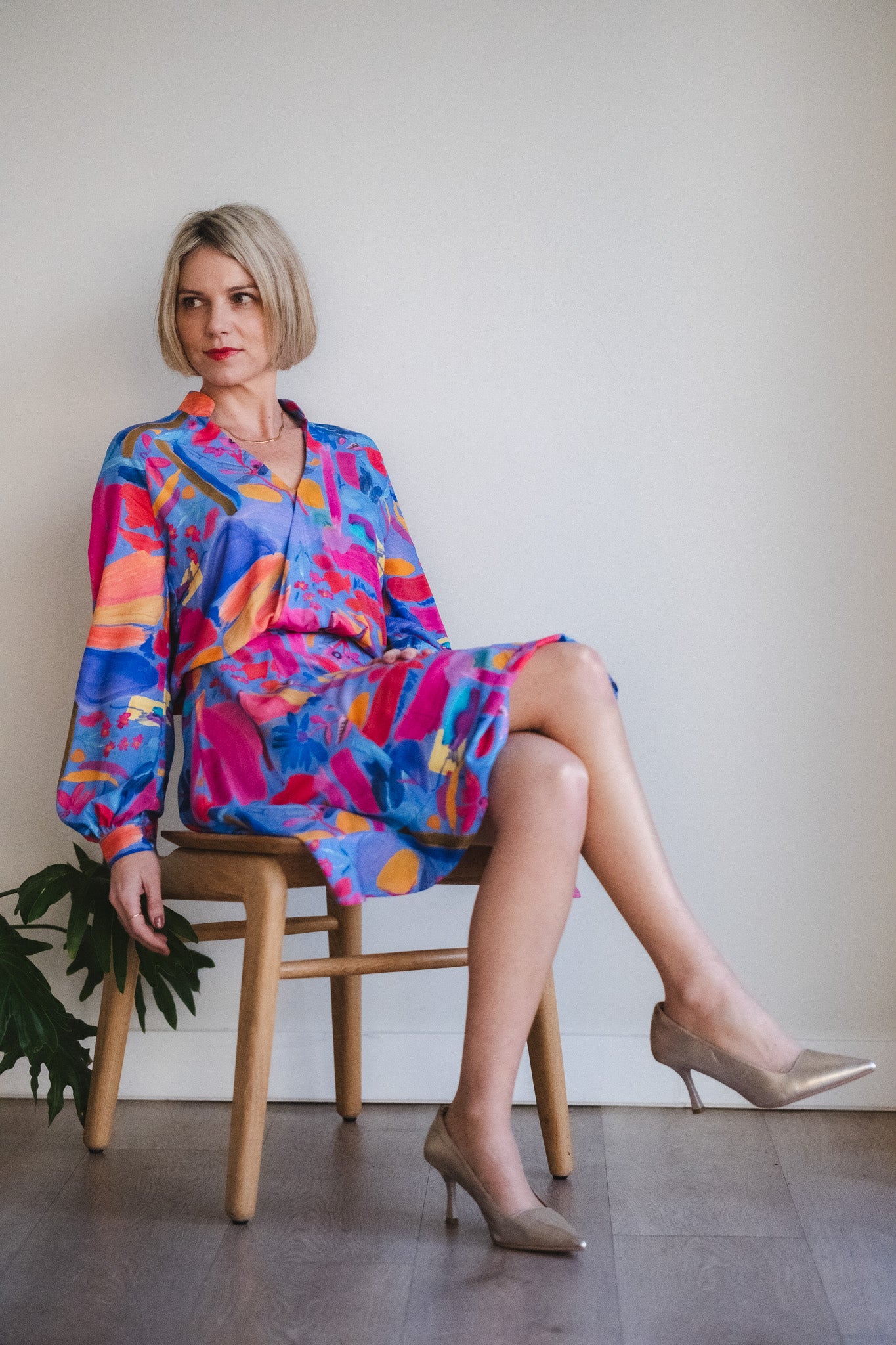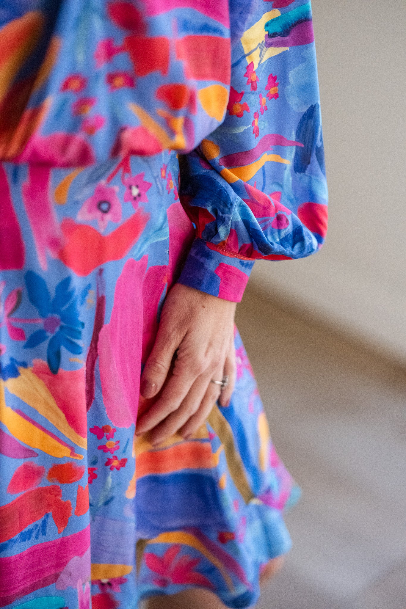 The dress is a beautiful feast of patterns and colour (made in the London printed viscose) which absolutely symbolises Berdine's bold creative flair, love for colour and her favourite city in the world.
