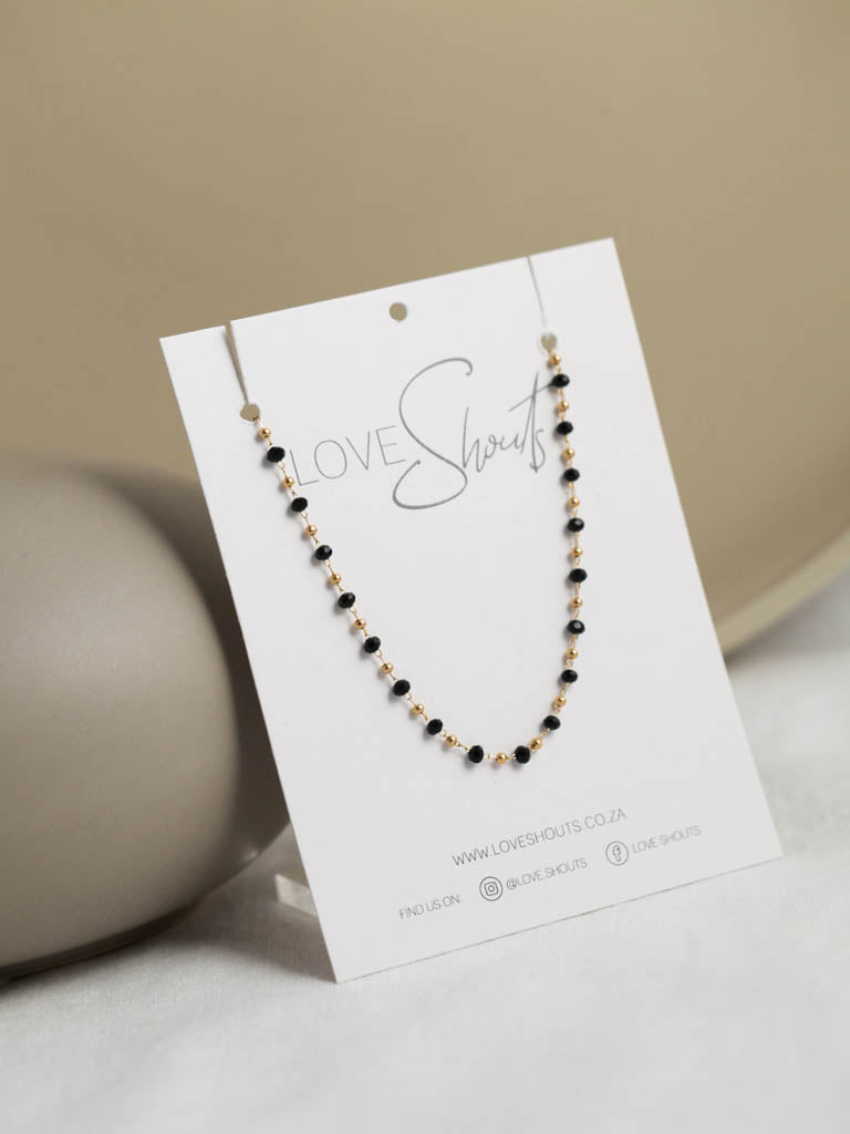 Black Bead and Gold Ball Combo Necklace