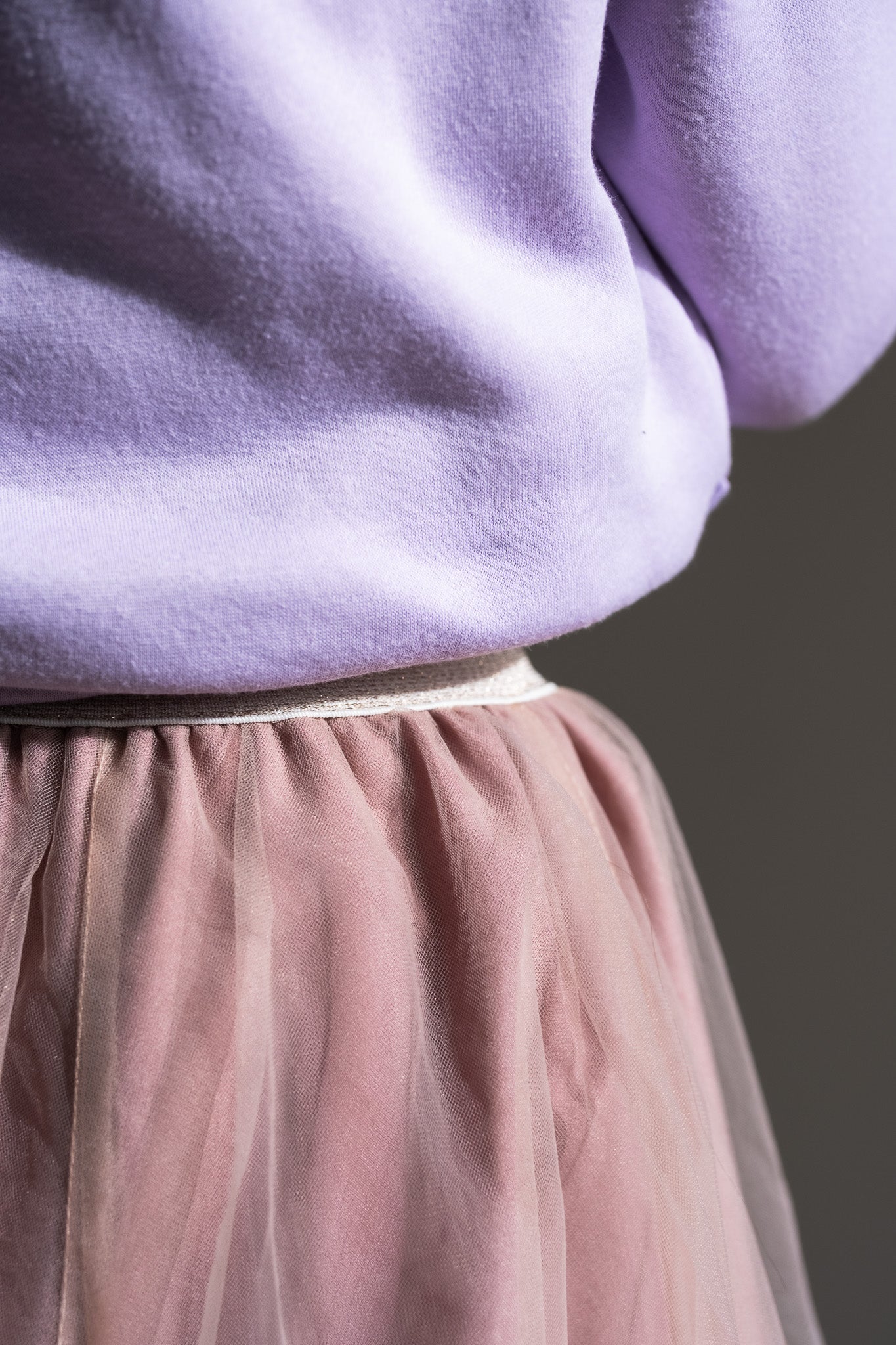 This is part of a fun sweat and bubble mesh skirt collection within our Like-a-Lady capsule. You are never too old to wear your own cute top and create memories in a tutu (mesh skirt).