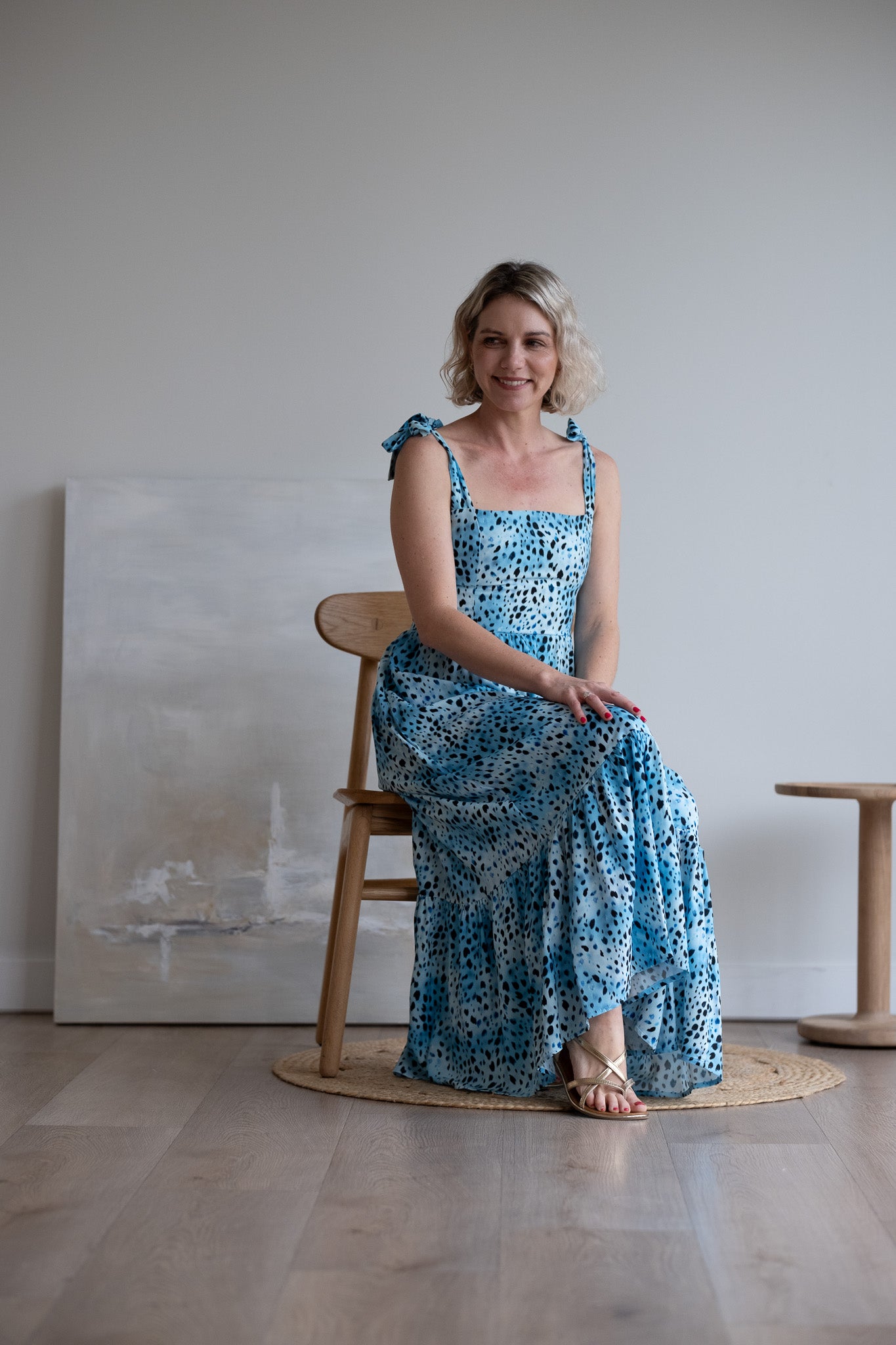 The Flow Maxi dress has shoulder tie straps, a smocked back and pockets (to carry the light things in life). Made from a beautiful Spanish viscose quality!