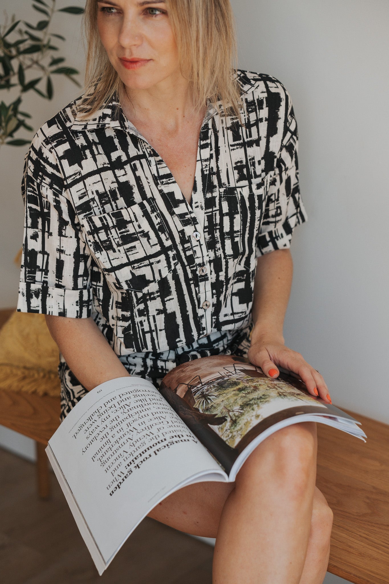 This Summer Linen Blouse is the perfect Just Be piece to relax, breathe and play in. It also comes in a short, so wear it as a separate or as a fun set.