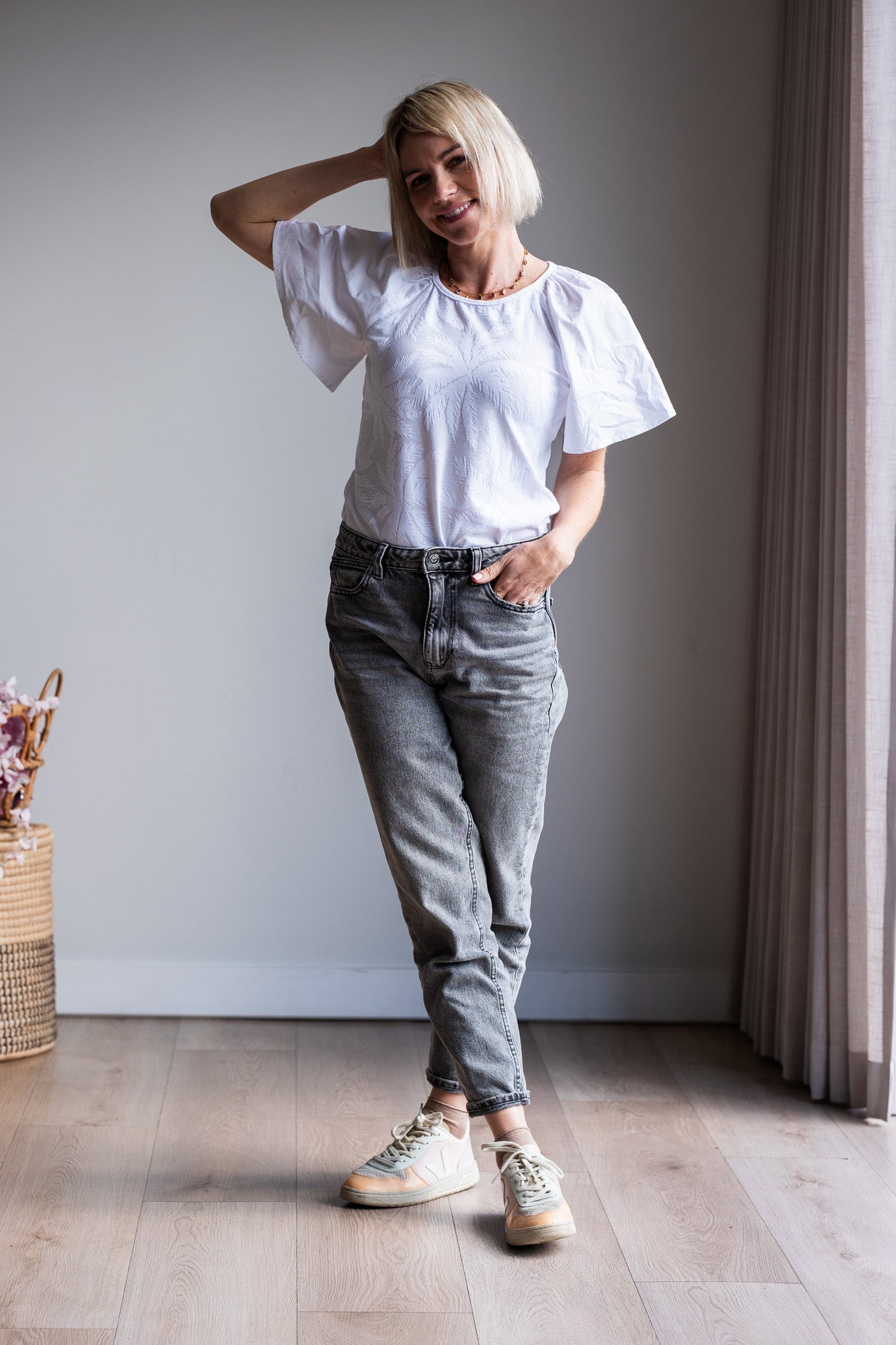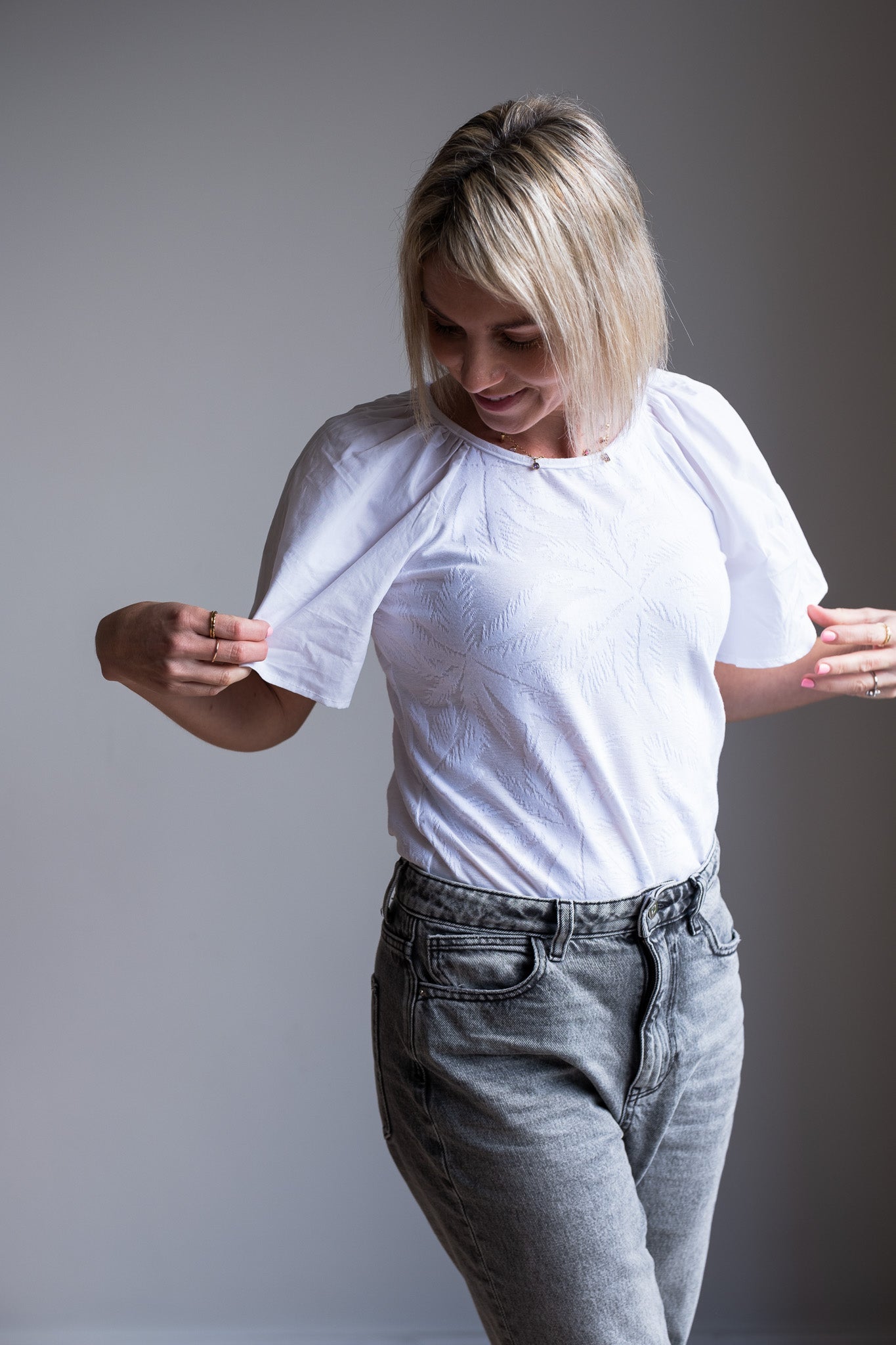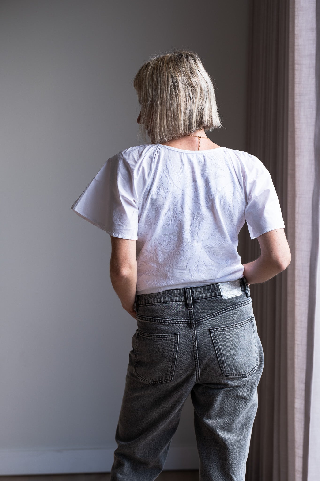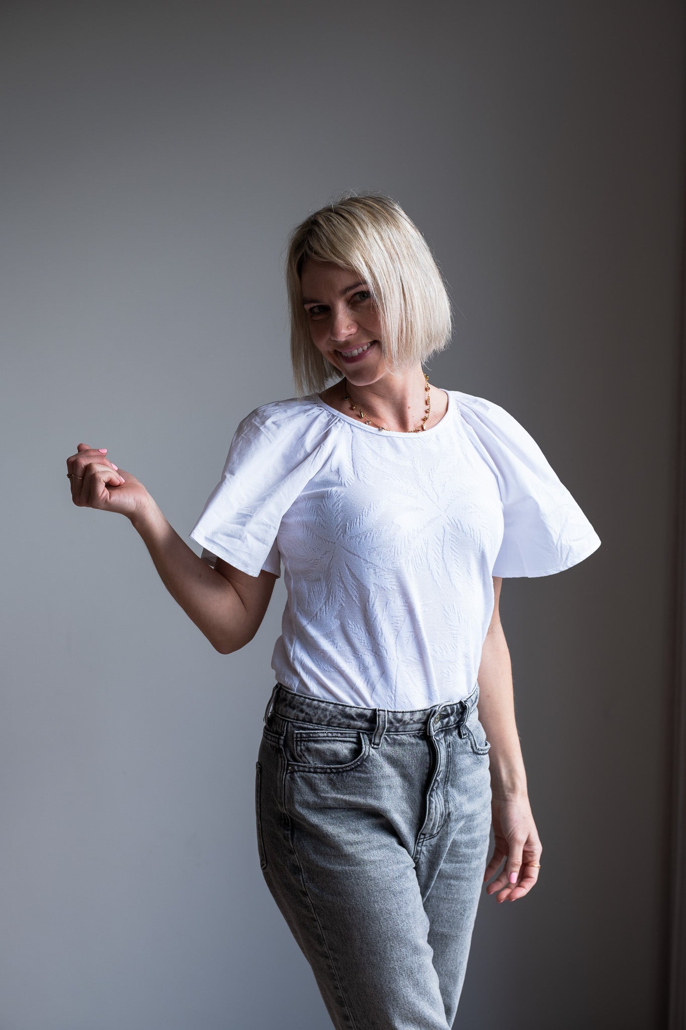 The lovely Peace Tee is made from a Devine palm tree embossed knit bodice and well complimented with poplin sleeves. It is the perfect (up and down dress) Tee for summer days.