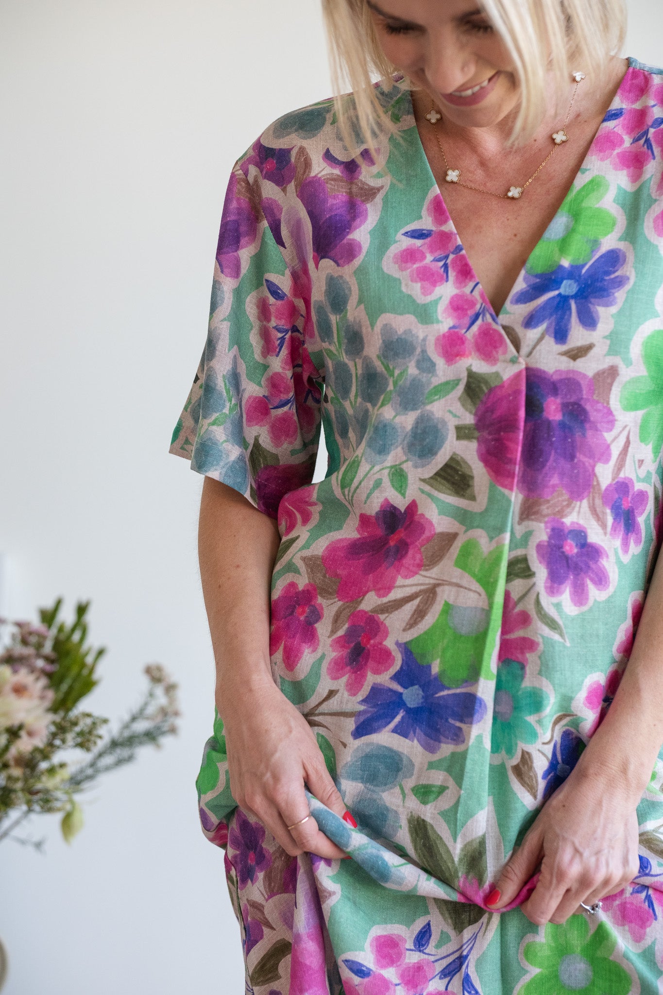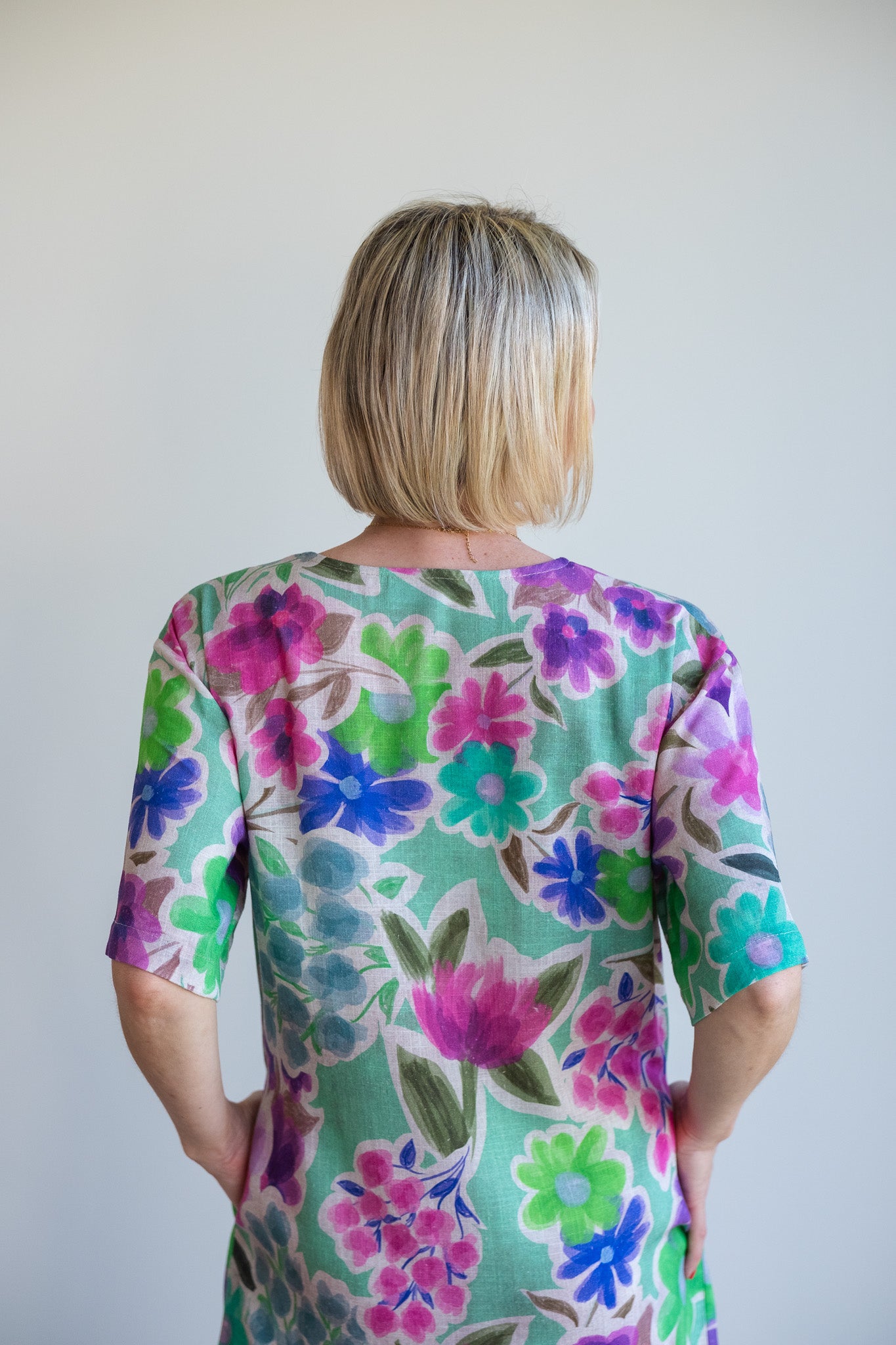 The Sunshine dress is made from a lovely, sustainable printed floral linen from Spain. Crafted into an easy-wearing shift dress with wonderful side pockets - perfect for hot summer days.